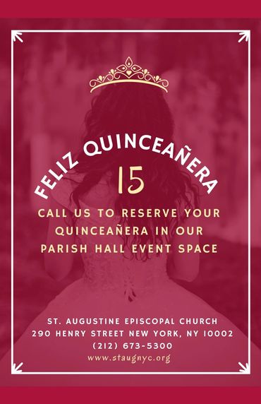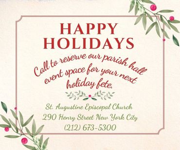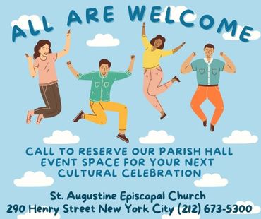 The Parish Hall and Common Room are available for birthdays, bridal showers, wedding receptions, baby showers, meeting conferences, community groups, anniversaries, photo shoots, film projects, graduations, reunions and repast. These spaces have the capacity for multimedia projection and Internet access - decorations not included. Please contact our